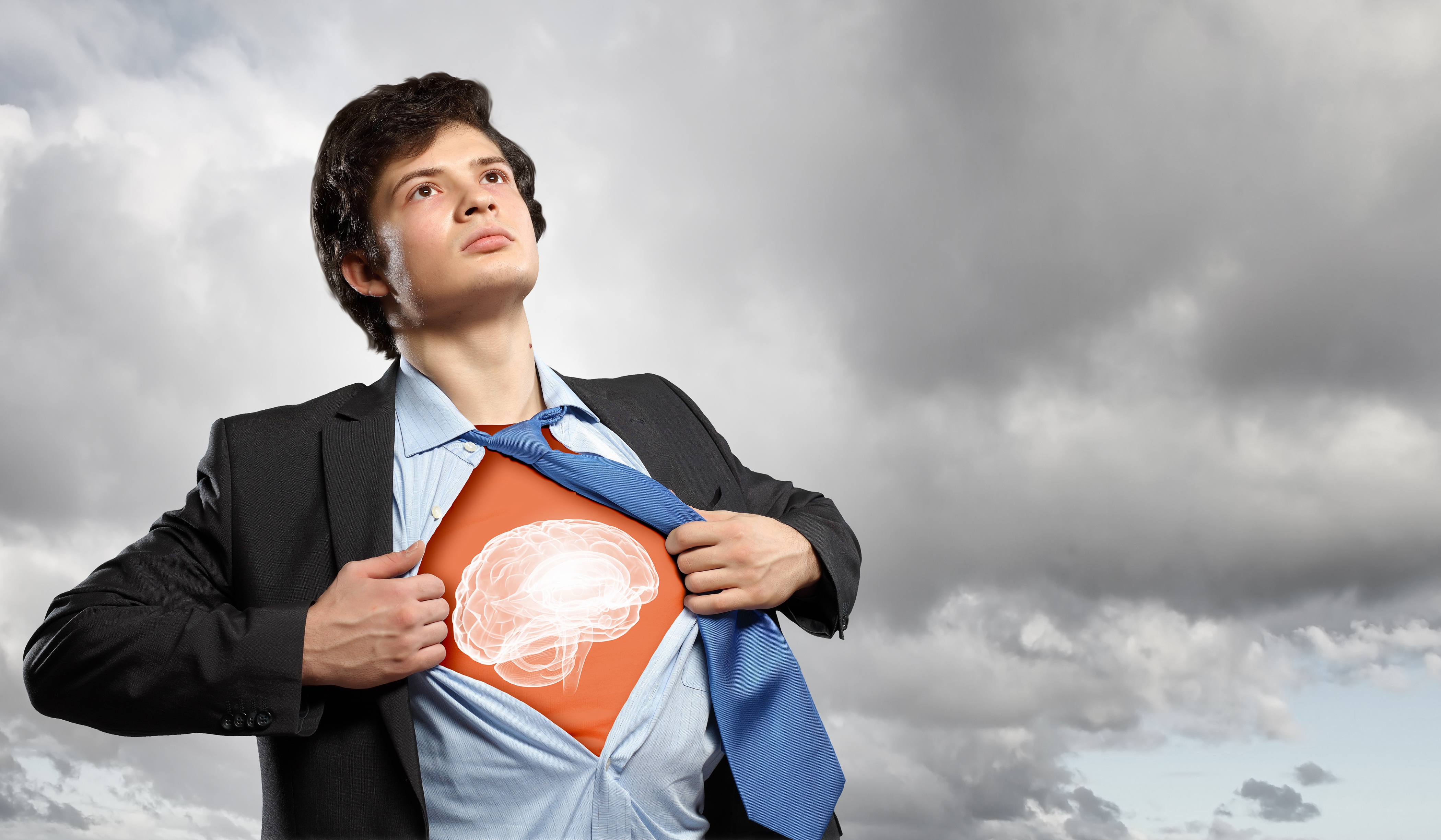Businessman opening his shirt on chest acting like super hero